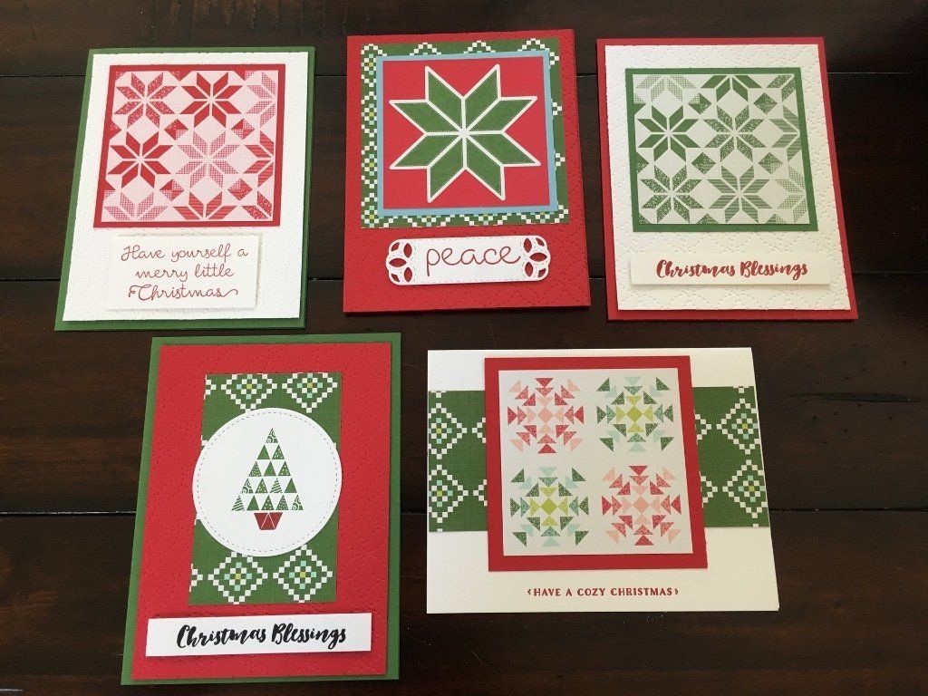 This set utilizes last year's Quilt Builder's stamps and dies. The dies and paper have been on the Clearance Rack and most of these cards were made simply using the dies and paper!